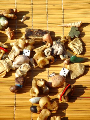 It is the ancestor or guide, and not the healer, who is providing the information. The sangoma is just the messenger. There is an understanding between the healer and the spirit as to the meaning of the bones and how they line up in relationship to each other, to themselves and to the direction of the mat on which they fall. They do not fall in a random pattern but rather in a distinct arrangement which can be read by the sangoma whose training has taught him/her to diagnose past and present ailments and even predict future occurrences. It seems that a “mini-field” of attention, intention, and coherence is set up between the healer, the client and the ancestors that allows the bones to lie in an intelligent pattern (telekinesis). The metaphors they represent can then be interpreted by the healer. The reading is usually concerned with what is happening at that moment in the patient’s life. Since the healer is reading symbols, s/he may get the wrong image and have to change direction. Divining is like interpreting someone’s dream, and only the owner of the dream will know if the meaning rings true. The information is given humbly and democratically. The healer will ask the patient if he agrees and, if so, will continue along the same line of exploration. If the patient disagrees, the healer will look at the same polarity in a different way. Correct interpretation is seldom offered dogmatically. Usually the patient or client is well aware of what is going on in her life. The bones will often highlight or focus on a problem that requires attention and that may have been ignored or denied.